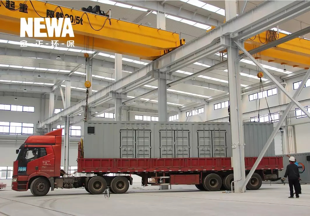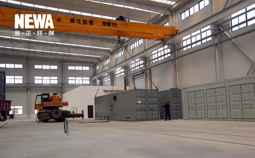 20多套DT特種膜水處理設備集裝箱陸續登場,9000㎡的生產廠房,滿足了大批量設備訂單的生產場地需求。