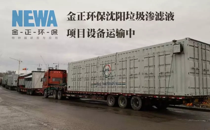 金正環??萍加邢薰居?018年4月3日簽訂第一期合同,4月13日首批5套日處理2100噸的DT特種膜設備已經發貨到現場,目前已進入調試階段。該項目體量大,處理難度高,工期極緊,金正環保從簽訂合同,所有設備從生產組裝到達現場,僅用了10天時間,這在垃圾滲濾液乃至高難廢水處理領域都很難做到。