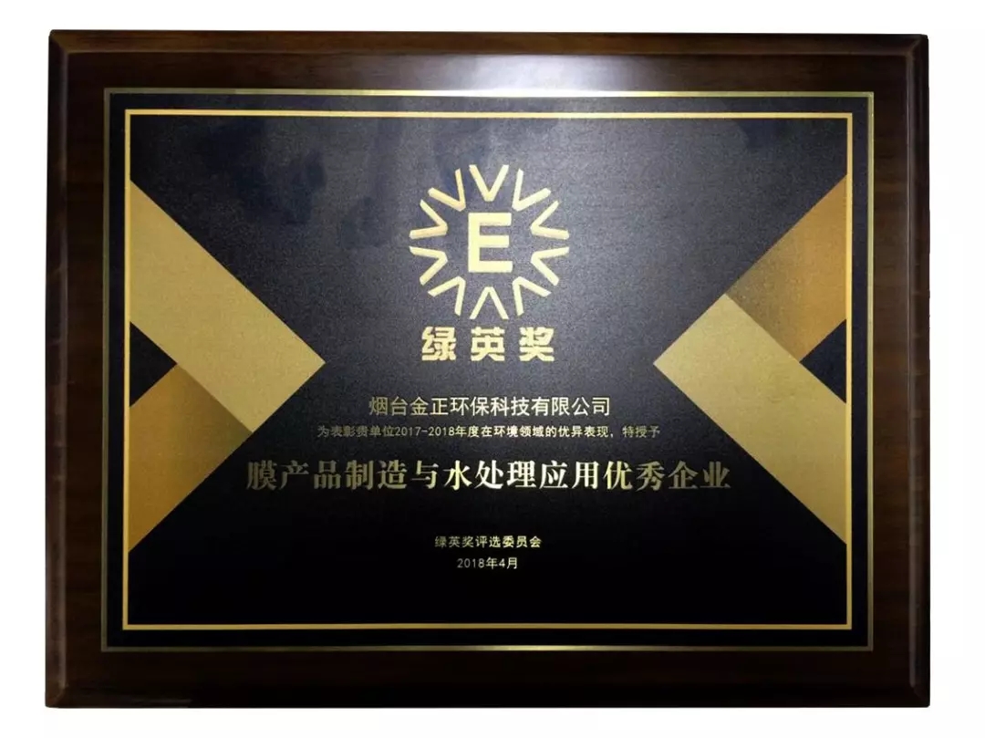 金正環(huán)保榮獲2017-2018年度“綠英獎”-膜產(chǎn)品制造與水處理應(yīng)