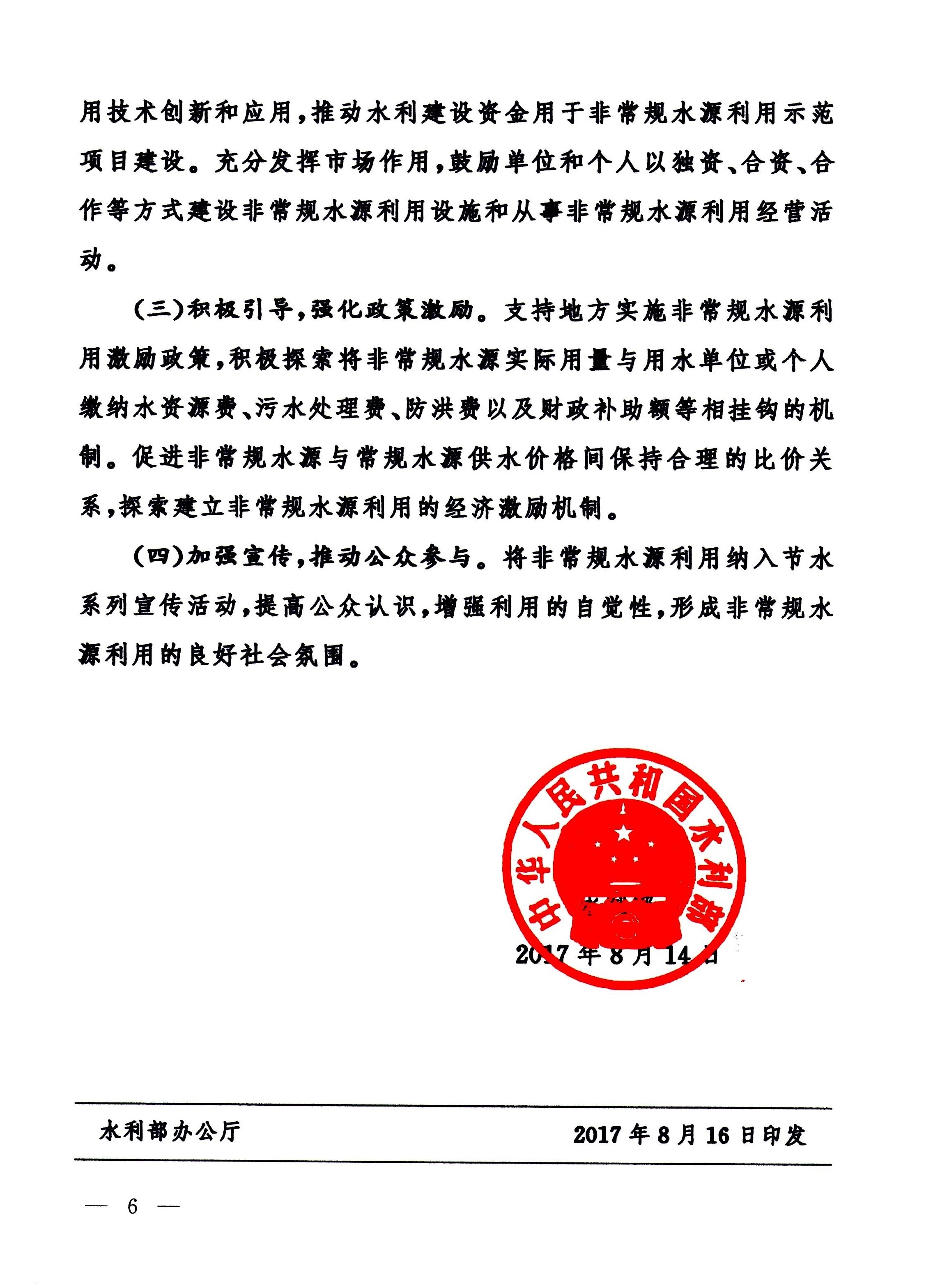 《水利部關于非常規水源納入水資源統一配置指導意見》