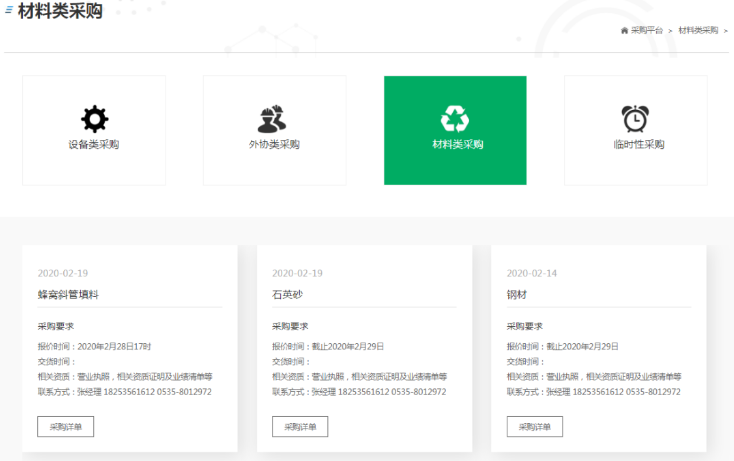 進入采購平臺頁面,點擊符合自己的采購類別,查看采購基礎信息;
