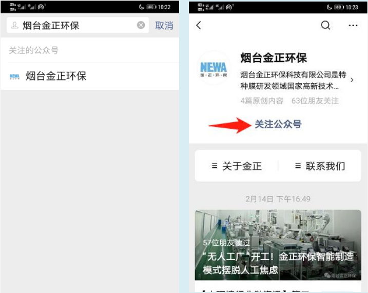 打開手機微信,添加公眾號“煙臺金正環保”;
