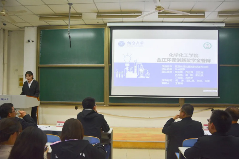 10月29日晚,煙臺大學(xué)化學(xué)化工學(xué)院年度金正環(huán)保創(chuàng)新獎學(xué)金答辯活動在學(xué)校綜合樓205室開展,經(jīng)過學(xué)院初選,包含革新“涂”強(qiáng)團(tuán)隊等在內(nèi)的18支個人和團(tuán)隊進(jìn)入最終答辯環(huán)節(jié),大賽設(shè)一等獎3名,二等獎4名,三等獎3名,共10位個人/團(tuán)隊獲獎。