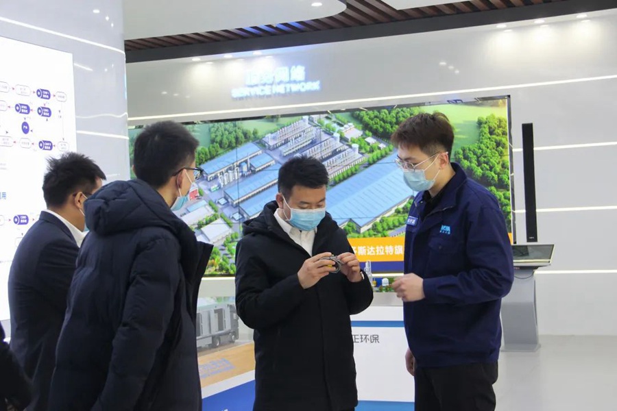 中建山東投資有限公司和中建八局一公司領導一行先后參觀金正環保水環境產業園、公司展廳、全自動化生產線、組裝車間、研發中心及大數據中心。詳細了解產業布局、核心產品、創新技術、成本優勢、智能制造、項目案例等情況。